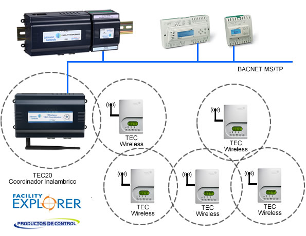 El sistema de termostatos inalambricos TEC para Facility Explorer utiliza tecnologia de punta basada en estandares abiertos, incluyendo el estandar IEEE 802.15.4 asi como la tecnologia ZigBee™ para crear redes de comunicacion inalambricas tipo malla. Este tipo de redes incrementa su confiabilidad proporcionando diferentes rutas de transmision de datos a traves de losdiferentes dispositivos inalambricos que forman la red. Esto quiere decir que la informacion no viaja siempre por el mismo camino, sino que utiliza diferentes trayectorias, de tal forma que si un dispositivo falla, la comunicacion no se detiene al poder utilizar diversos caminos para transmitir la informacion.